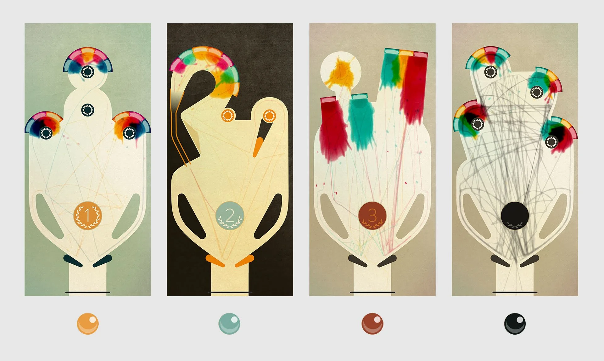 We wanted to deconstruct pinball and reformulate the game as a series of distinct puzzles, each with a clear goal. This meant stripping the visuals back to what was necessary, without losing the game’s vibrant appeal.